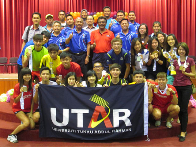 The three golds were from the female volleyball team who won the first gold medal for UTAR and two golds from the first female single and male double pair in badminton. The badminton players who contributed the two golds were Banking and Finance student, Kong Kah Yan in the first female single event and Banking and Finance student Kuey Wei Sheng and Foundation in Science student Koh Boon Chuen as the double pair players. Three challenge trophies were also awarded to these winners who secured gold medals.