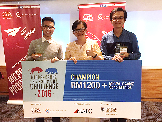 Two Accounting students from the Faculty of Accountancy and Management (FAM) were crowned Champion at the MICPA-CAANZ Investment Challenge 2016 held at Monash University Malaysia Campus on 24 September 2016. UTAR was part of the 17 universities that participated in this challenge.