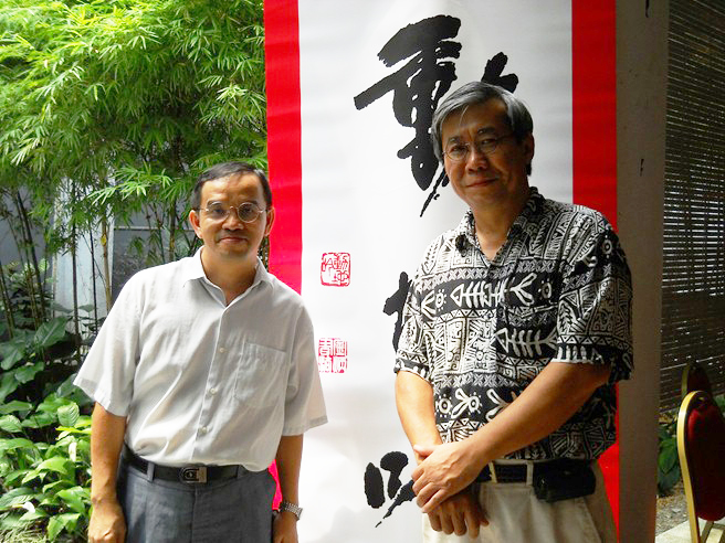 Dr Lee (left) and Fu Chengde in a literary event
