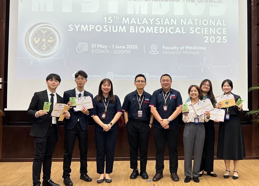 Five students from the UTAR Faculty of Science (FSc) excelled at the 15th Malaysian Symposium on Biomedical Science 2025, hosted by the Faculty of Medicine, Universiti Malaya (UM) from 31 May to 1 June 2025.