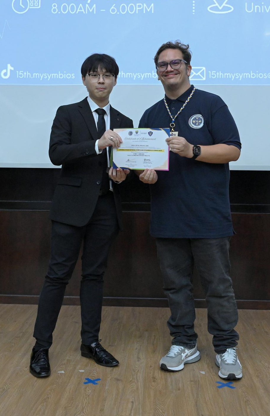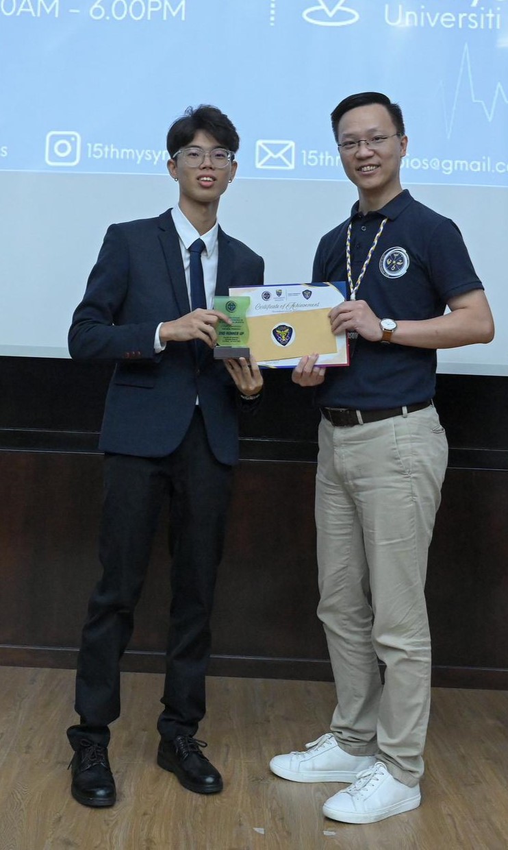 Ch’ng received the award for his presentation titled Larvicidal Bioefficacy of Black and Oolong Tea against Aedes sp. Mosquitoes and was awarded a cash prize of RM100. Hooi’s presentation, Antifungal Activity and Phytochemical Screening of Rambutan (Nephelium lappaceum) Leaf Extracts, earned her a cash prize of RM50. Song was recognised for his presentation titled Larvicidal Bioefficacy and Histopathological Midgut Examinations of Artemisia scoparia Essential Oil-Treated Aedes sp. Mosquitoes, and received a cash prize of RM100.
