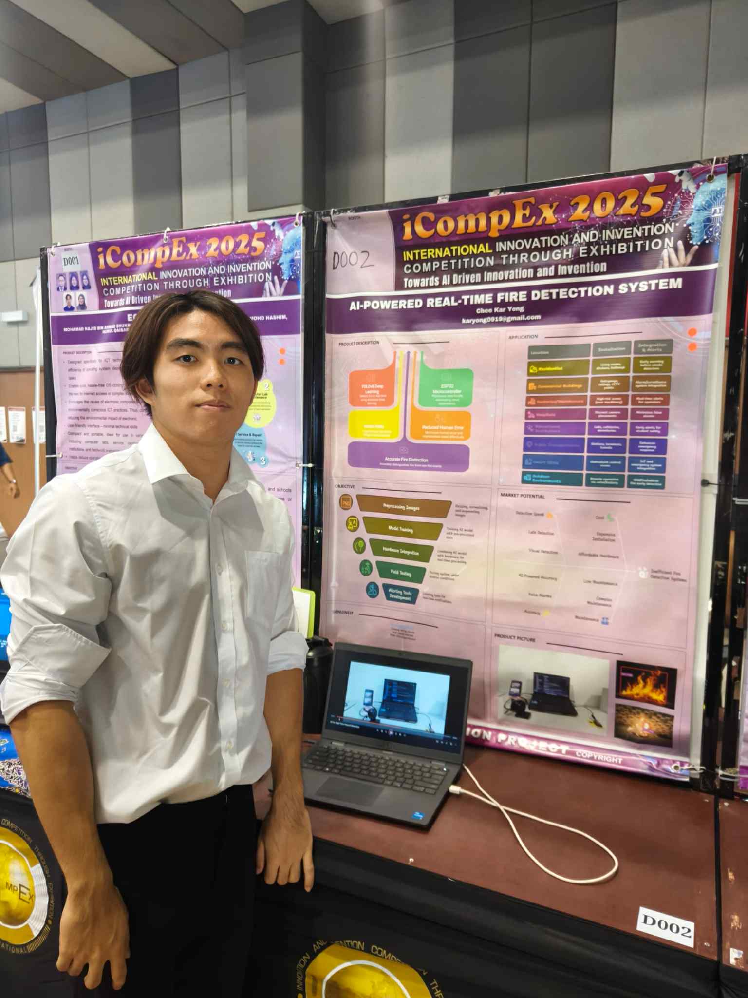 Bronze medalist Chee representing the team with the research AI-Powered real-time fire detection system