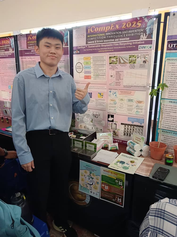 Silver medalist Pua representing the team with the research Earthya™: Sustainable bioplastic film recycling initiative
