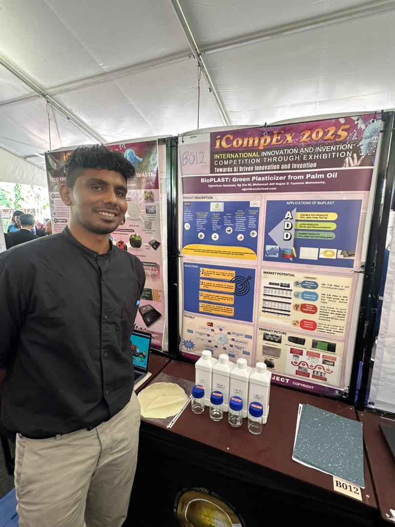 Silver medalist Ugentiran representing the team with the research BioPLAST: Green Plasticizer from palm oil