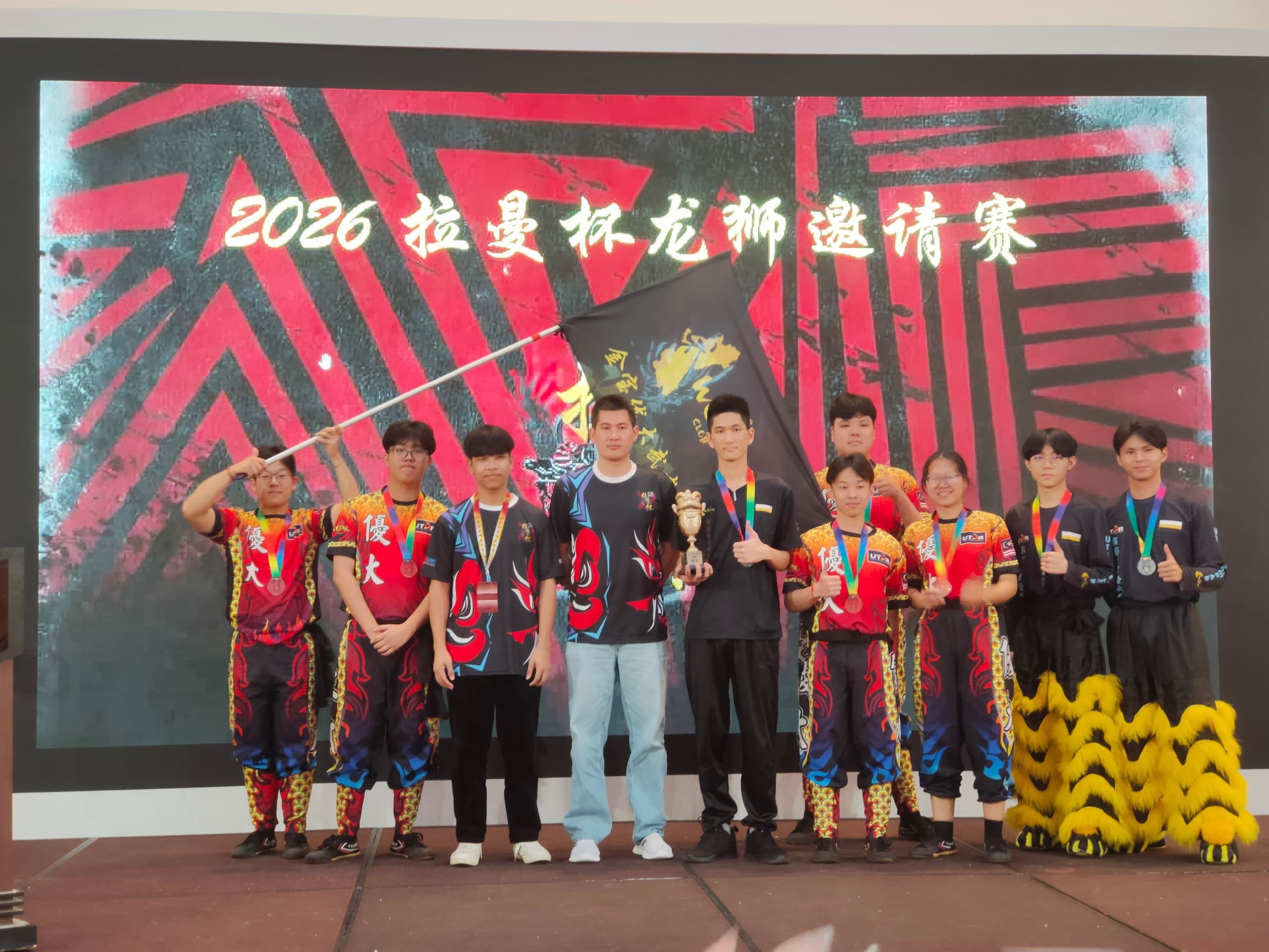 Truly, the demonstration of high-level technical proficiency particularly through the execution of a complex “Cai Qing” routine themed Scaling the Peak to Seek Medicine secured their podium finish. The team explained that this routine required precise coordination between the lion head and tail performers, as well as seamless rhythmic synchronization with the percussion team to ensure a cohesive and impactful presentation. In addition to technical execution, the team demonstrated effective resource management by designing and creating their own equipment and performance props, showcasing creativity and craftsmanship. Ultimately, this resulted in the team receiving a team trophy and a bronze medal each.