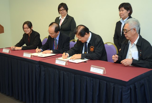 Dr Yap (second, from left) and Ir Tang signing the memorandum of