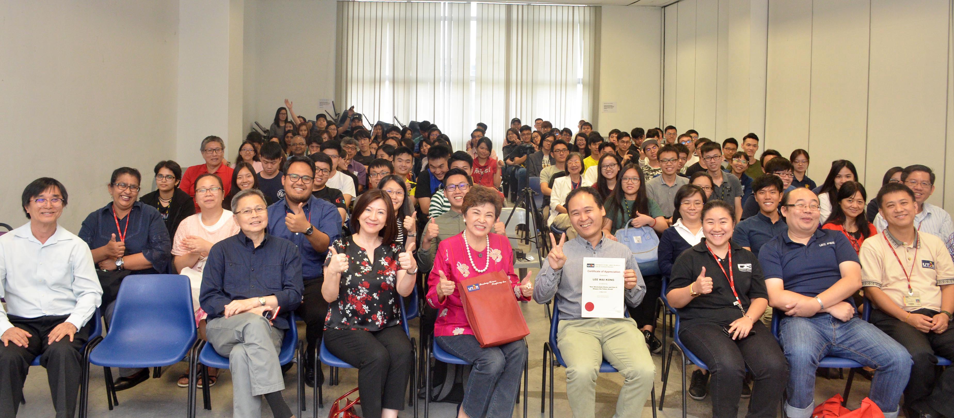 Responding to a question in Q&A session, Lee explained that UTAR Blockchain Certification System is relevant as it will prevent certificates from being forged. He added, “Actually we do not need a blockchain to do this (certificate system). We can have a centralised server that everyone can access. However, this is fine if the centralised system does not have any problems, let’s say, for another 100 years. This is where blockchain has its value. The decentralised system will secure the recovery (i.e. the blockchain records) in case of server break down because it can be backed up from the nodes. Moreover, it is very difficult to create fake certificate as every issued certificate is “related” through a series of previous certificates through cryptographic hash function”.