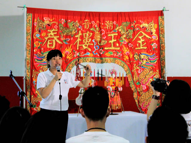 Goh introduced the history of Teochew puppet and explained the difference between Teochew Puppet and Malay Puppet (Wayang Kulit). “The difference does not only lies in the appearance of the puppet but also the handling technique of the puppet,” said Goh. Goh also mentioned that the puppetry came before the Chinese opera, as such every performer should be respectful towards the puppet.
