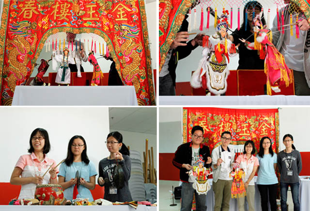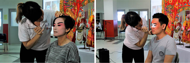In order to provide the participants with a clearer picture of the Chinese opera roles, two volunteers were chosen for a make-up demonstration of the roles. The workshop continued with a short demonstration of Teochew puppet performance.
