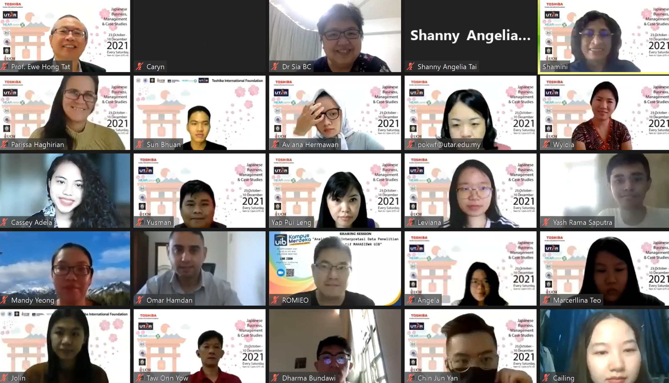 Prof Parissa Hagririan will share her weekly lectures on International Business Environment Studies with the students. Some of the topics that will be shared are Japanese business culture, consumer, production, distribution, knowledge management, strategy and negotiation. Aside from UTAR students, students from Far Eastern Federal University, Indonesia International Institute for Life-Sciences, London School of Public Relations, Nanjing Agricultural University, Phuket Rajabhat University, Samarkand State University, Telkom University, Tunghai University, UCSI University, Universidade Federal de Minas Gerais, Universitas Airlangga, Universitas Diponegoro, Universitas Internasional Batam, University of Hyderabad and Woxsen University participated in the programme.