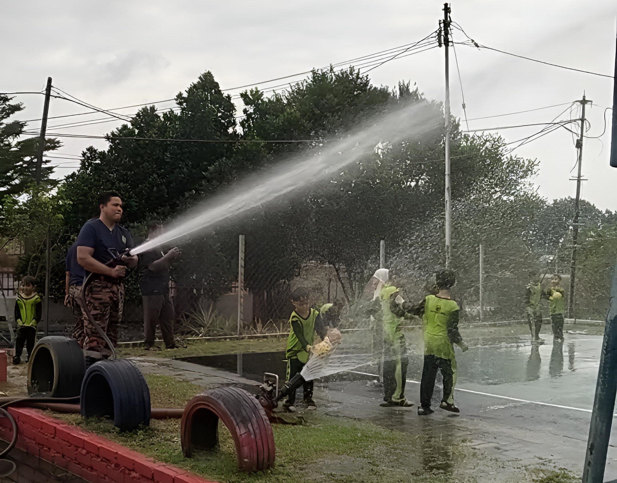 Kindergarteners learning about firefighting and rescue operations