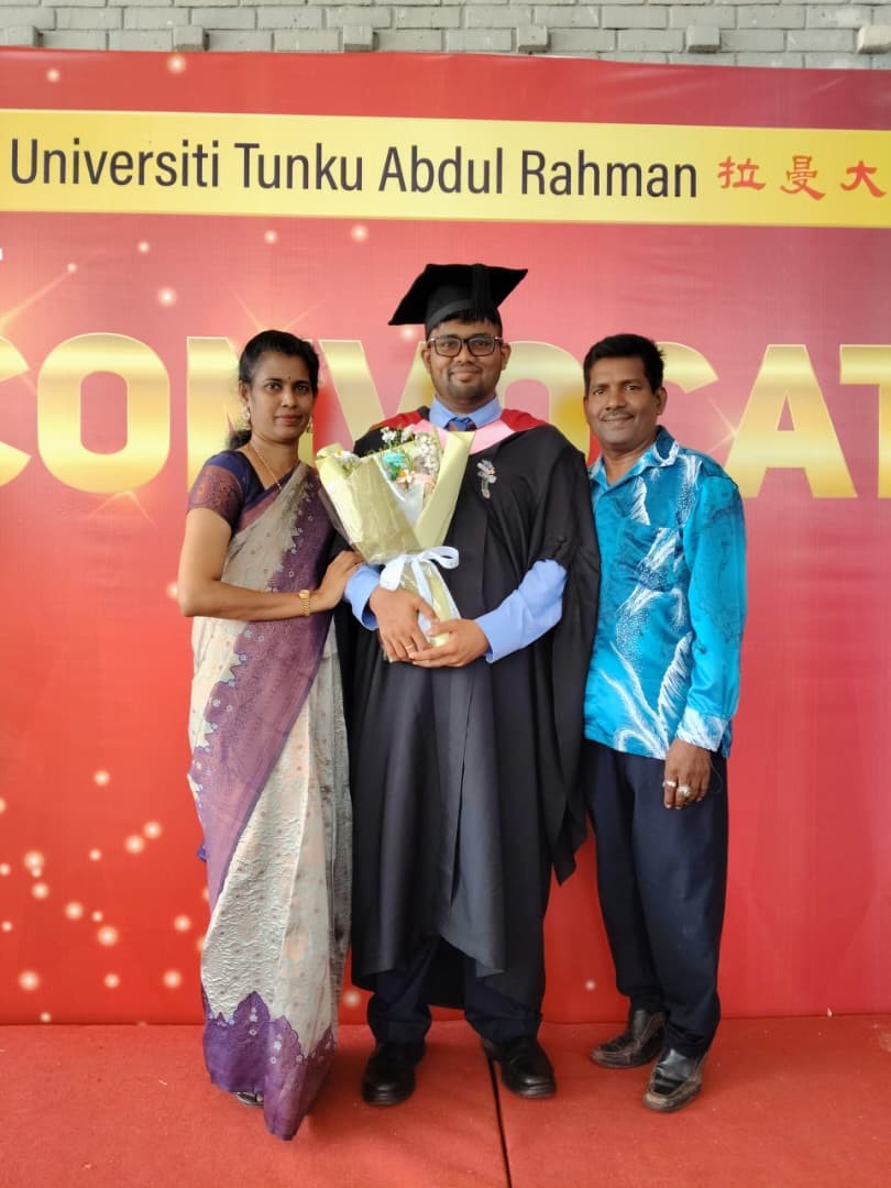 Tamil Thendral celebrating his milestone with his proud parents as he pursues his dream of becoming a screenwriter in the film industry