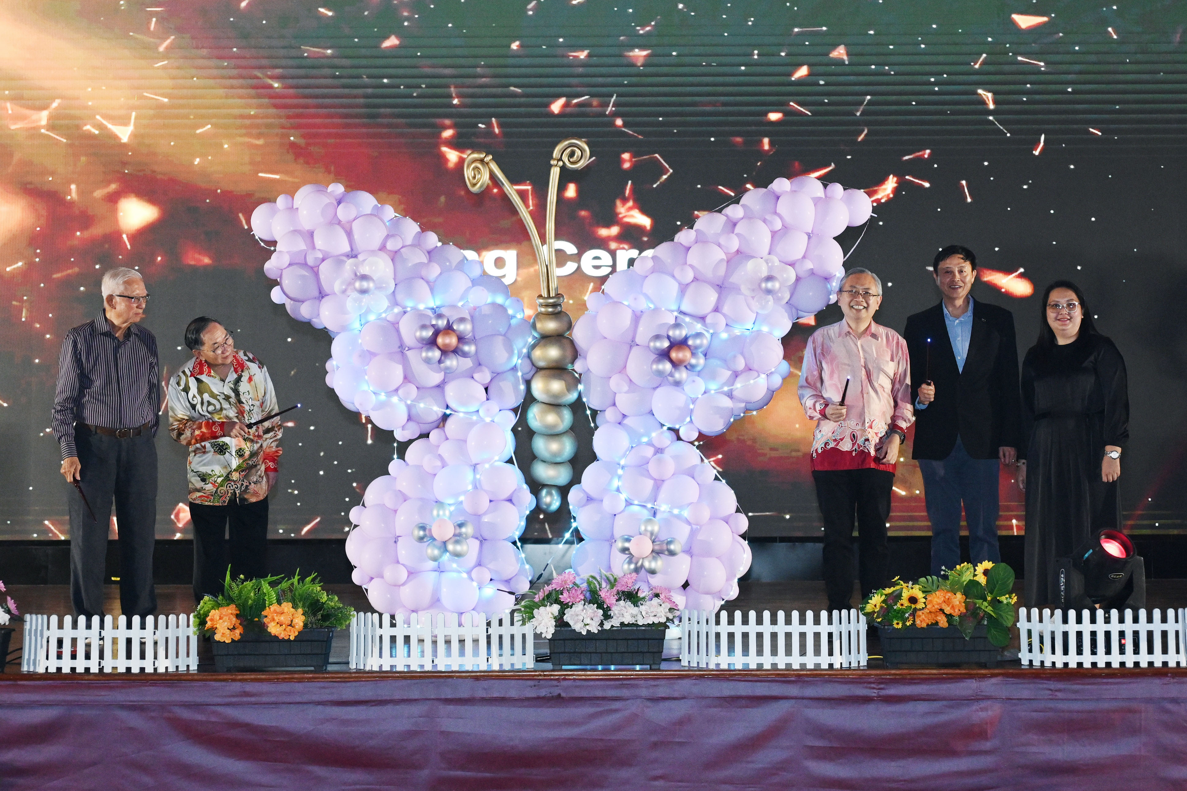 From left: Tan Sri Sak, Tan Sri Chuah, Prof Dato’ Ewe, Mr Hew, and Ms Aw inaugurating the celebration