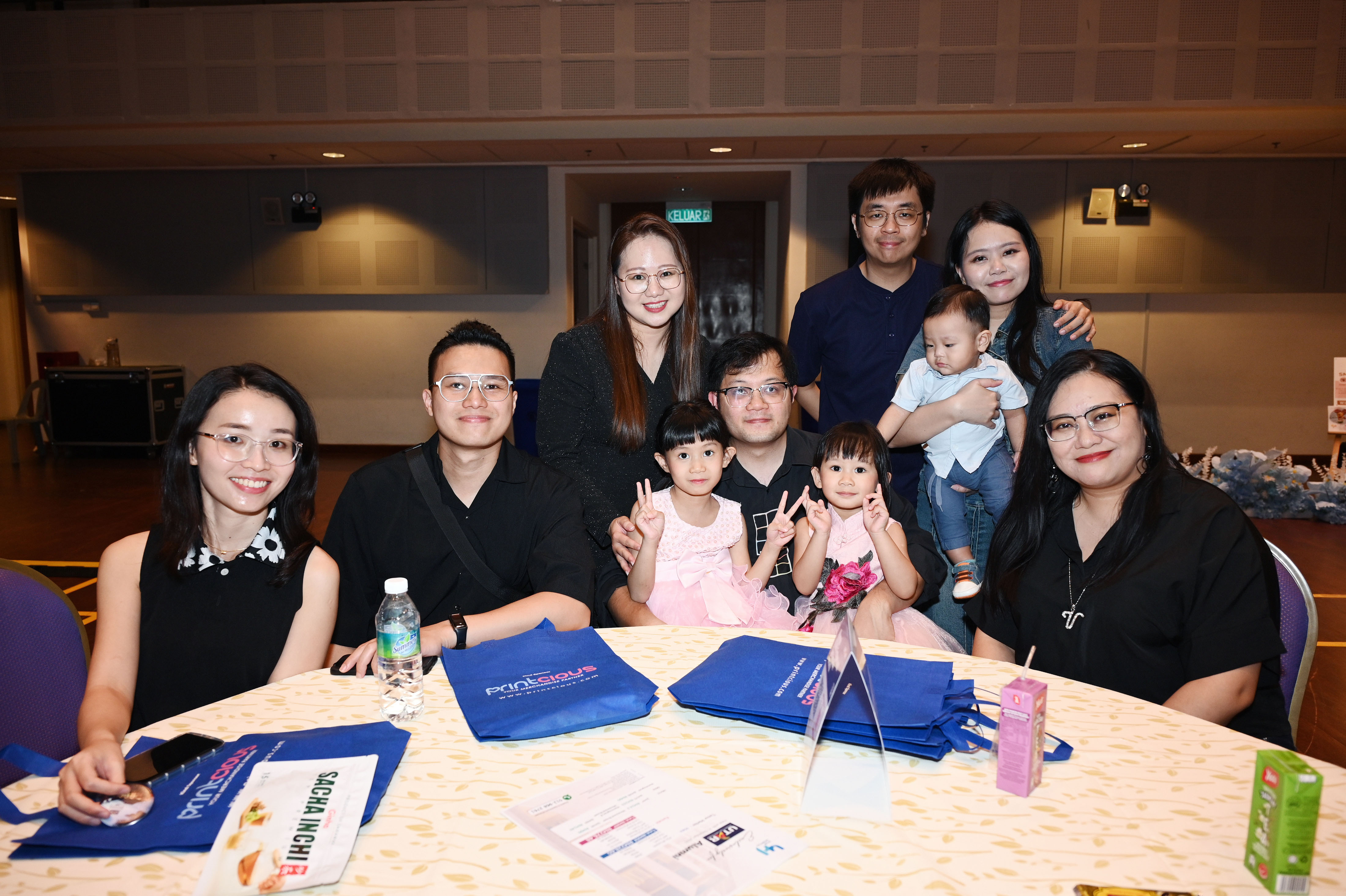 Alumni and their families sharing jolly moments together at their tables