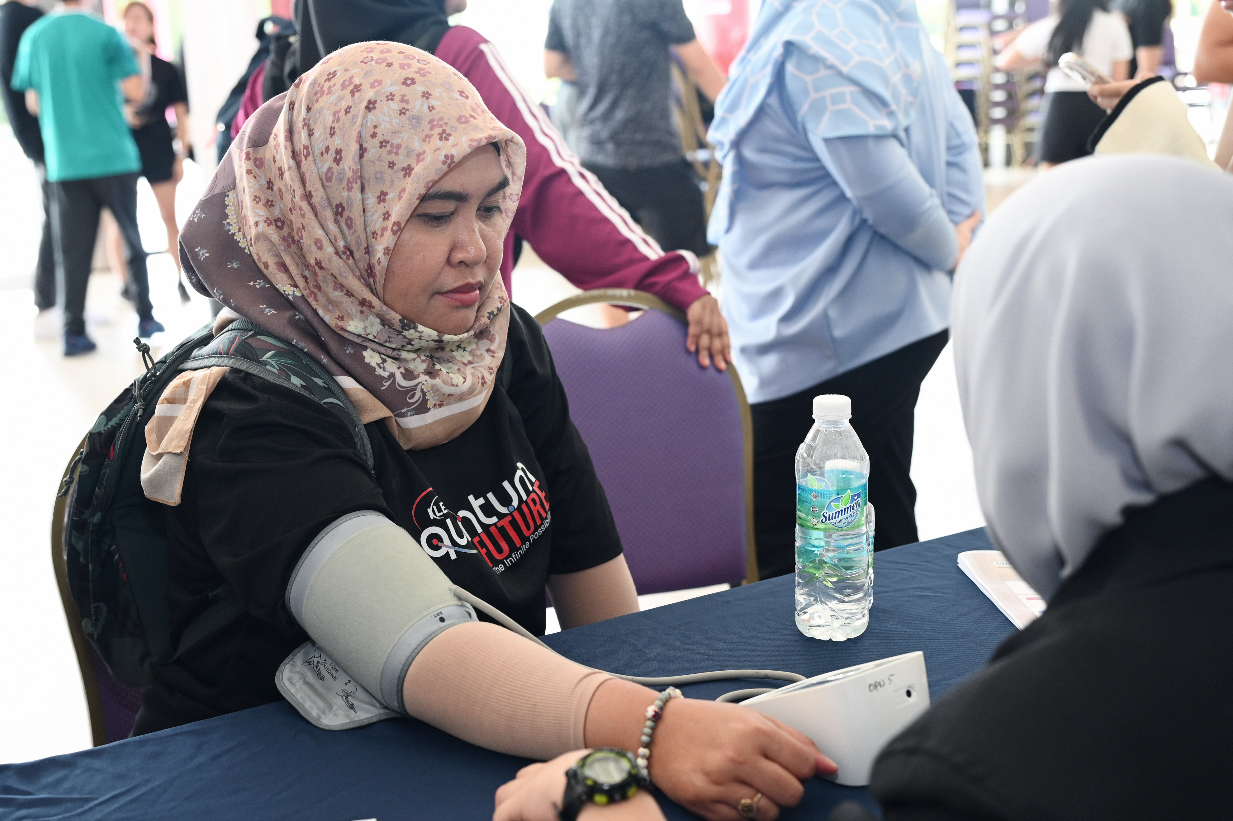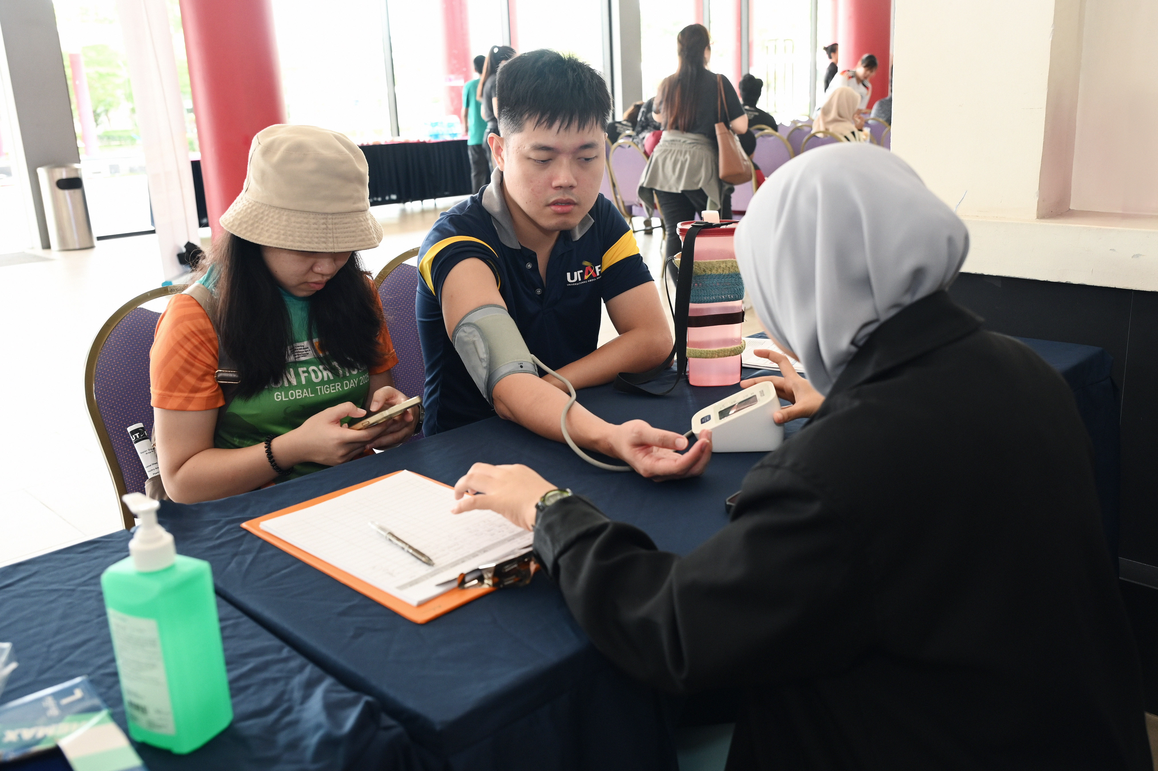 Participants having their body condition monitored by UTAR Hospital staff at the free medical check-up booths