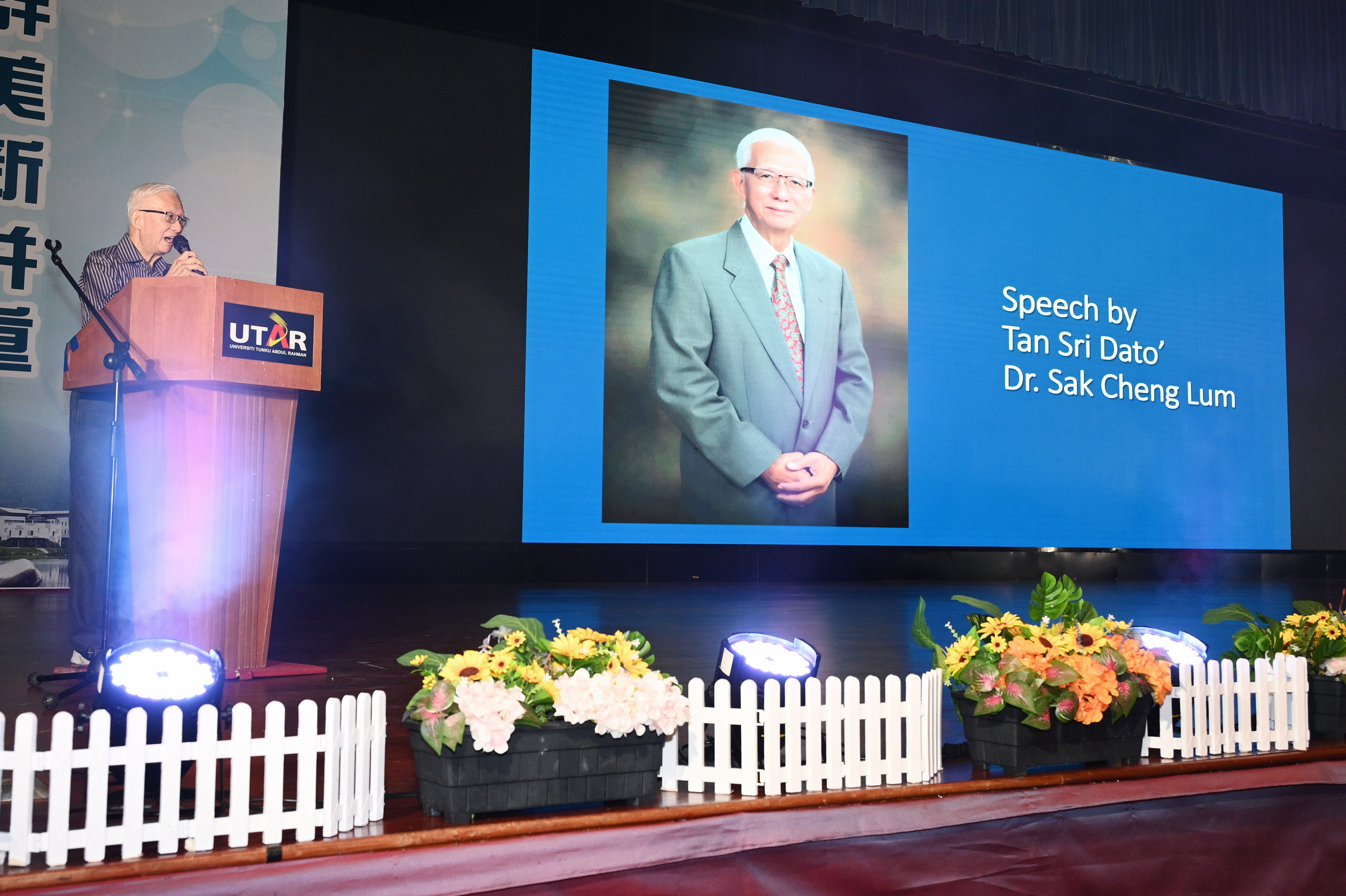 Tan Sri Sak highlighting UTAR’s philosophy of providing affordable education since its foundation