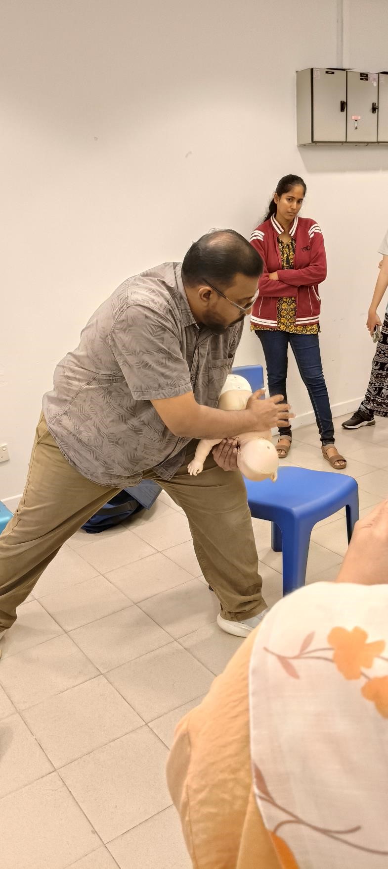 Deepening the participants’ understanding through the hands-on, practical learning session proved insightful, as they had the opportunity to practise CPR techniques on mannequins. The Q&A session also enabled participants to ask clarifying questions, which made the session more interactive and engaging, as the trainer freely shared useful information and answers, hoping that participants would gain the confidence to act decisively in a real crisis. Ultimately, participants were able to solidify their understanding, refresh their knowledge, and gain practical readiness to be effective first responders.
