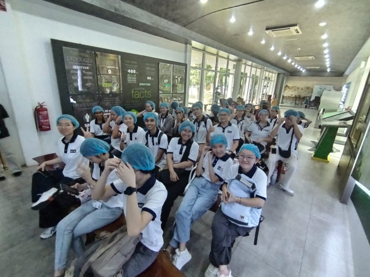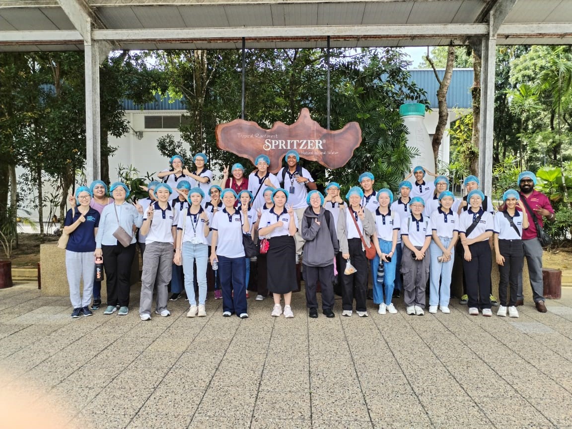 The first stop at Spritzer Eco Park and Factory offered students a firsthand look at one of Malaysia’s leading mineral water producers. During the visit, Mr Shaiful Hajri, Senior Executive, shared the company’s journey from the discovery of its underground water source in Taiping to the expansion of its product range, which now includes mineral, flavoured, and sparkling water. Students were also briefed on safety requirements before observing key stages of the production process, including bottle moulding, sterilisation, filling, packaging, and distribution.