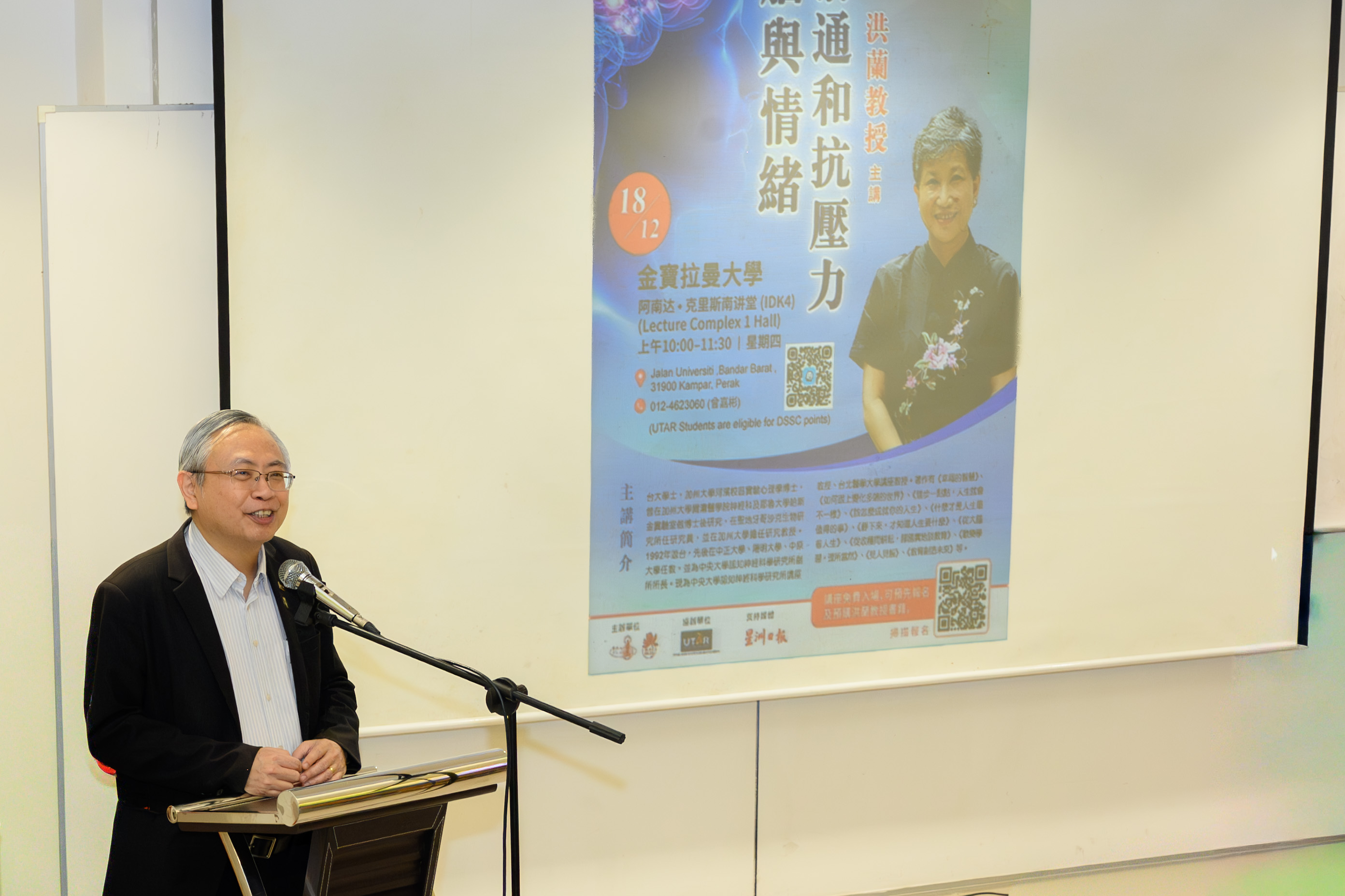 UTAR hosted a lecture titled Brains and Emotions, Communication and Resilience at its Kampar Campus on 18 December 2025, featuring Prof Hung Lan, a prominent cognitive psychologist and brain science expert. The lecture was part of her Malaysia Lecture Series.