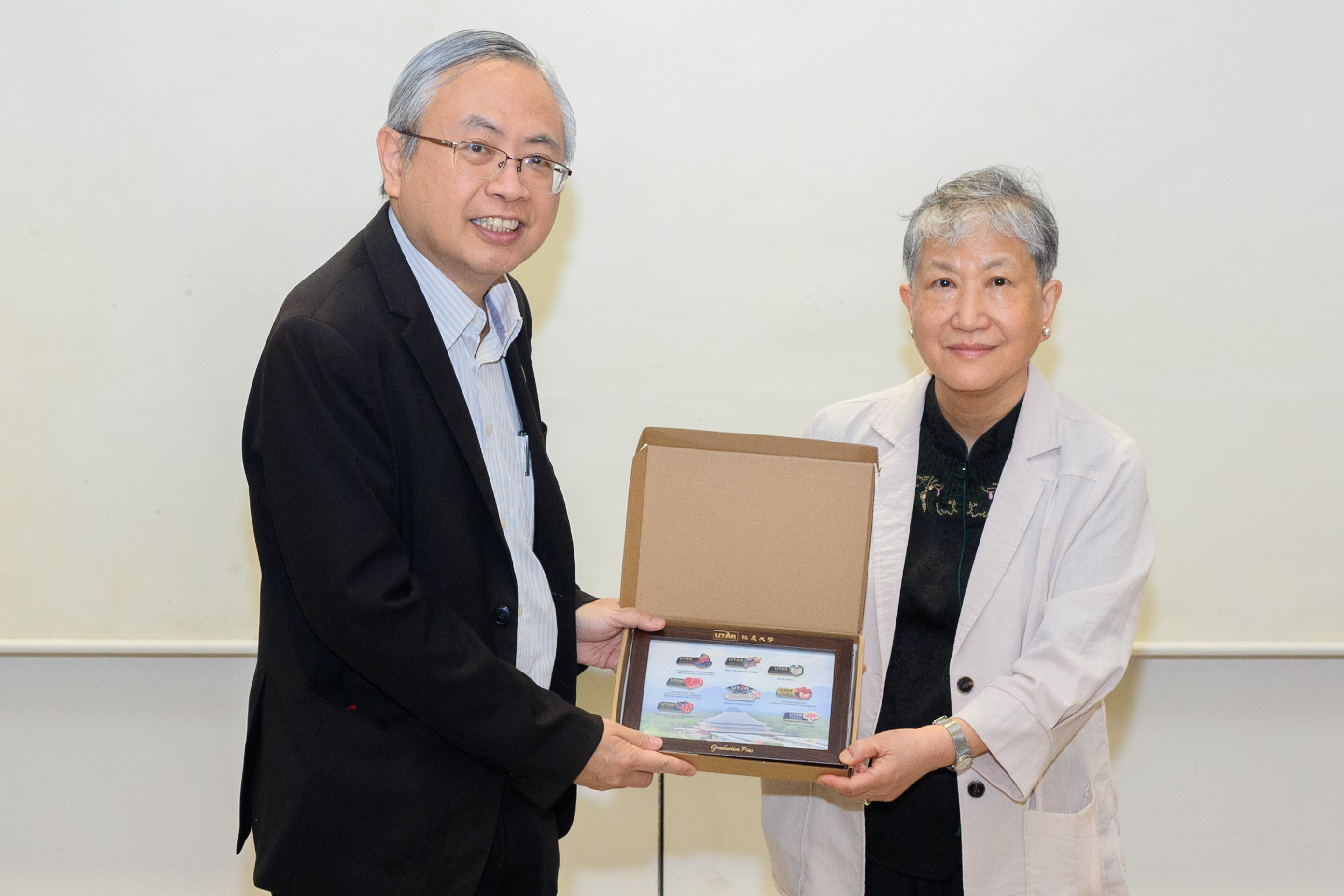 Prof Dato’ Ewe (left) presenting a token of appreciation to Prof Hung