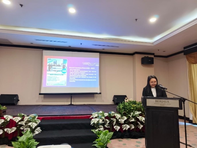 UTAR alumna and Director of Dreiheit Group of Companies, Ms Ng, speaking at the gathering