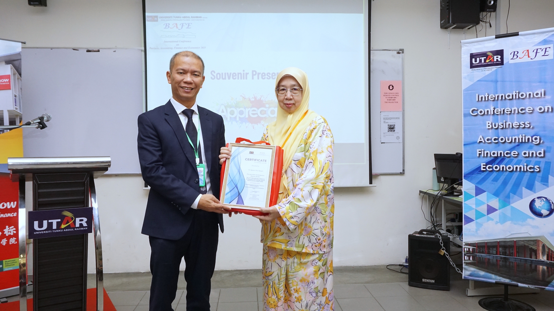 The 13th conference emphasised the impact of artificial intelligence (AI) in businesses, noting that when guided by ethical principles and integrated with green technologies, AI can accelerate progress in key areas, such as clean energy, quality production, healthcare, and sustainable industries. The discussion on the theme Embracing Business Innovation in the Era of Artificial Intelligence: Towards Achieving Sustainable Development Goals, took place on 22 October 2025 at UTAR Kampar Campus, and via Zoom.