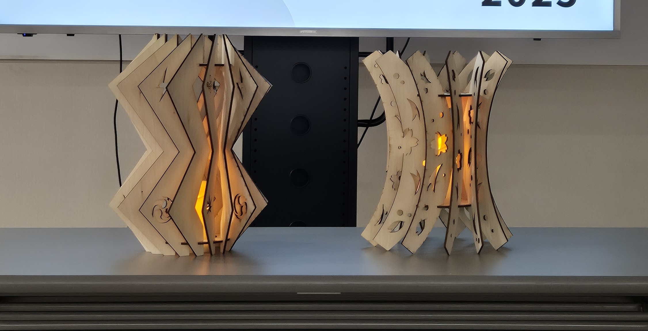 The students were divided into teams, and each showcased their creativity and products’ practical application. The products produced were: intricate, laser-cut aesthetic lampshades that played with light and shadow; a modular and portable PC stand that could be assembled into a single flat board for easy storage; a horn-shaped wooden speaker, exploring acoustics and digital fabrication with ShopBot; a sturdy stool and a desk organiser made from sustainable and efficient materials; and a smartphone stand and stool.