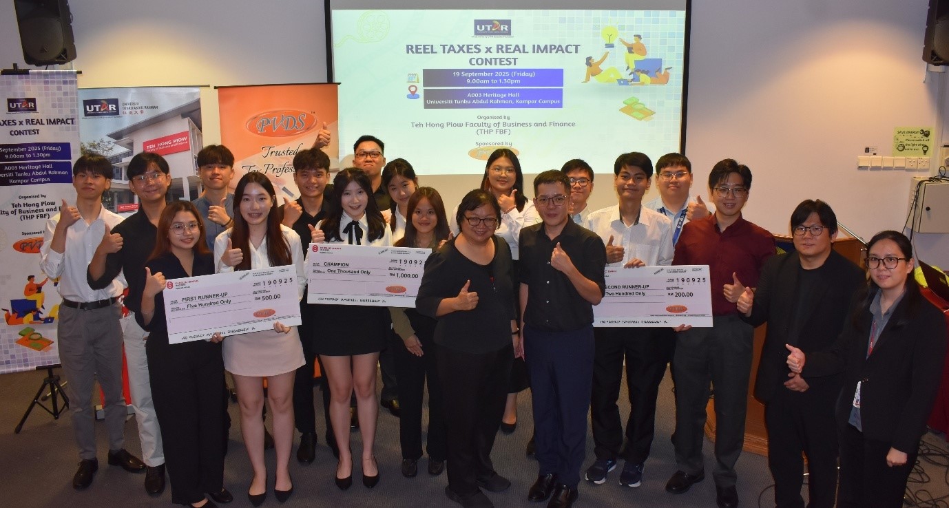 Promoting tax awareness through creativity and innovation, the Reel Taxes x Real Impact Contest successfully engaged UTAR students in understanding taxation concepts beyond the classroom. Organised by the Department of Commerce and Accountancy of Teh Hong Piow Faculty of Business and Finance (THP FBF), in collaboration with PVDS Consulting Sdn Bhd, the contest took place on 19 September 2025 at UTAR Kampar Campus.
