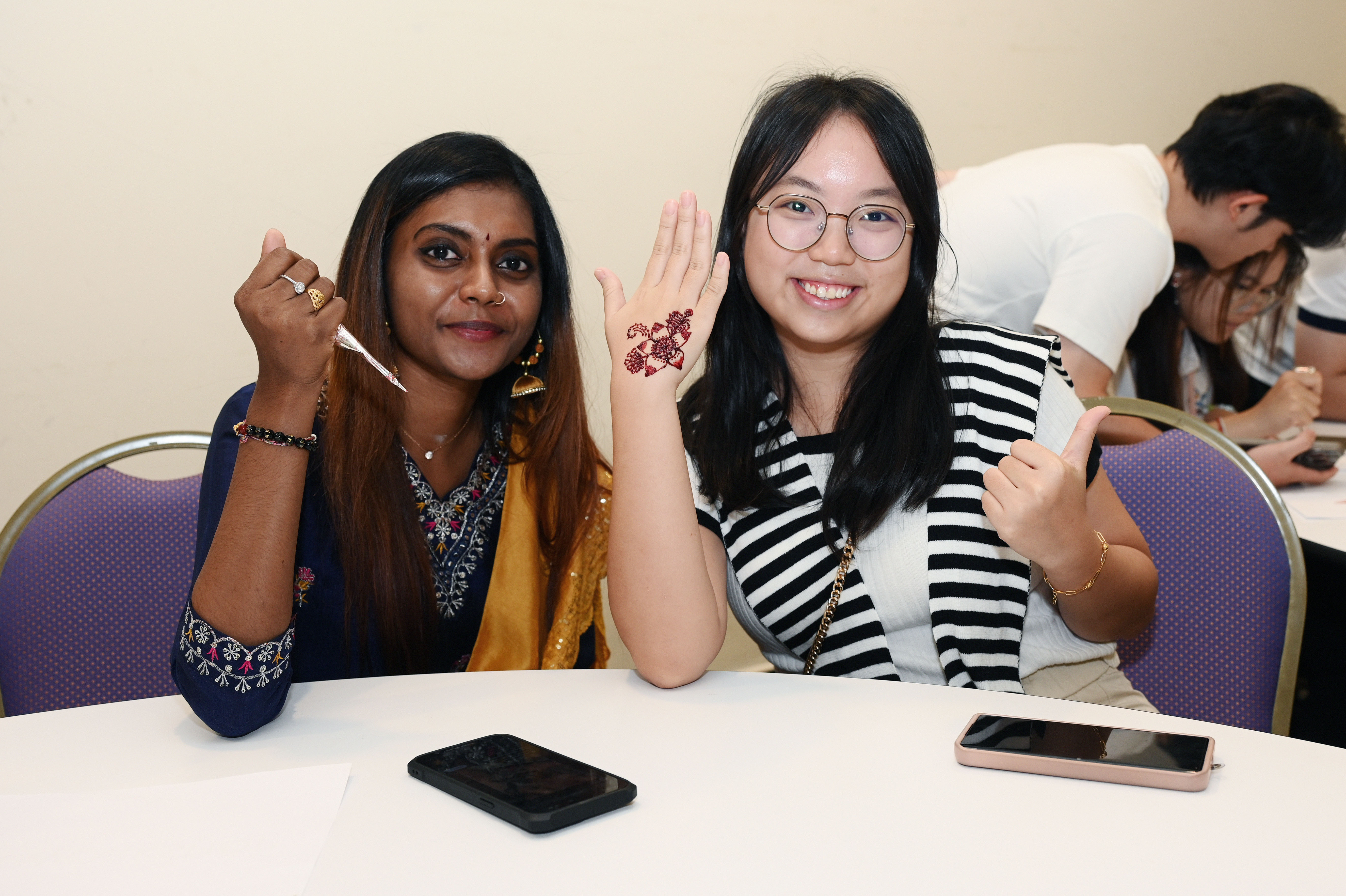 Henna in hand — participants exploring the delicate art of henna tattooing at the workshop