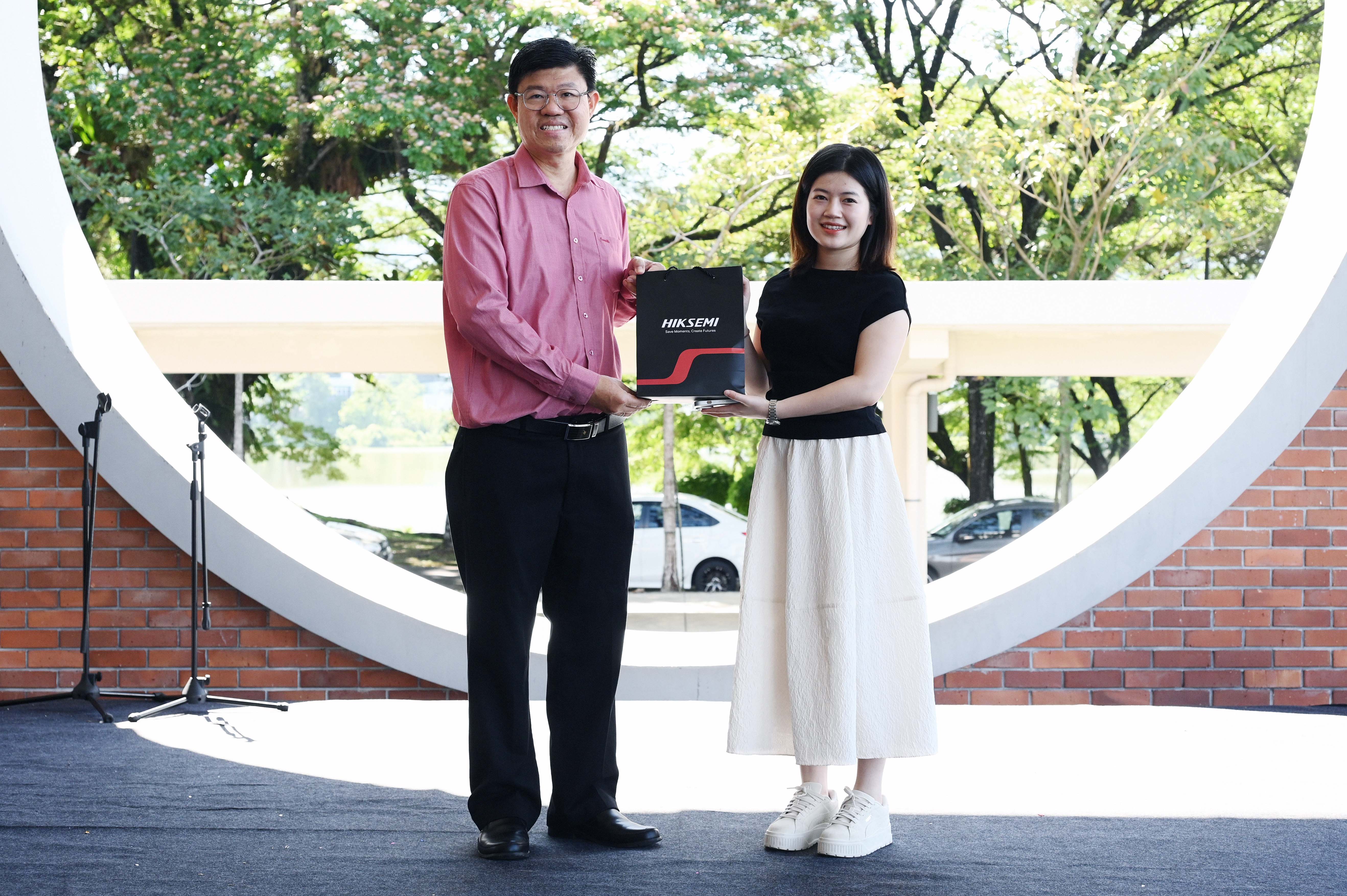 From left: Prof Choong receiving token of appreciation from HIKSEMI Malaysia Sales Manager Ms Anita Zhao