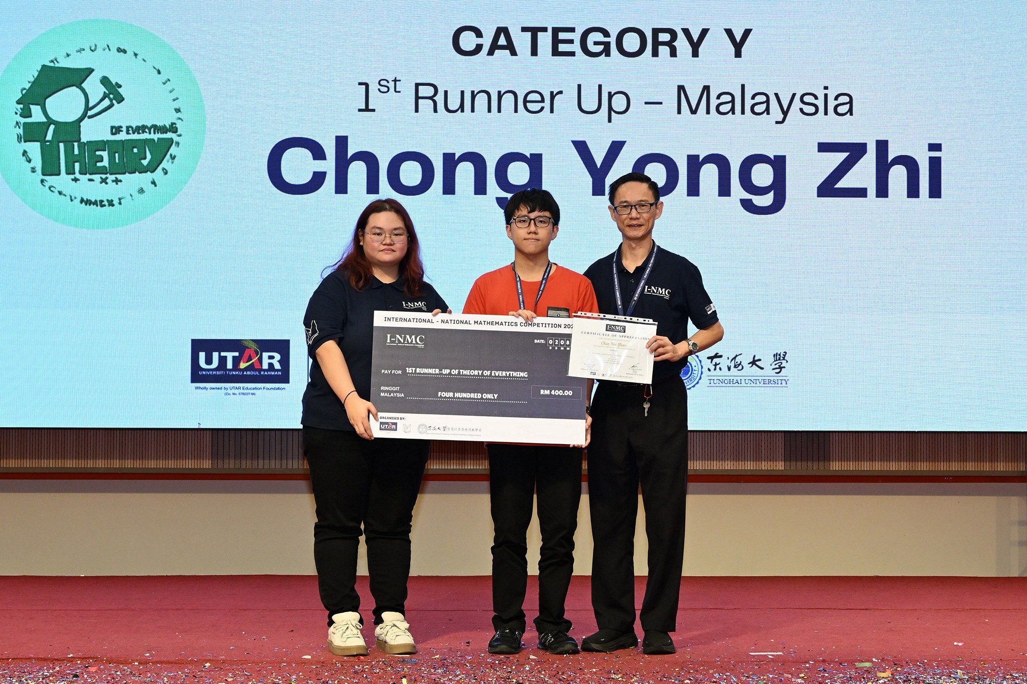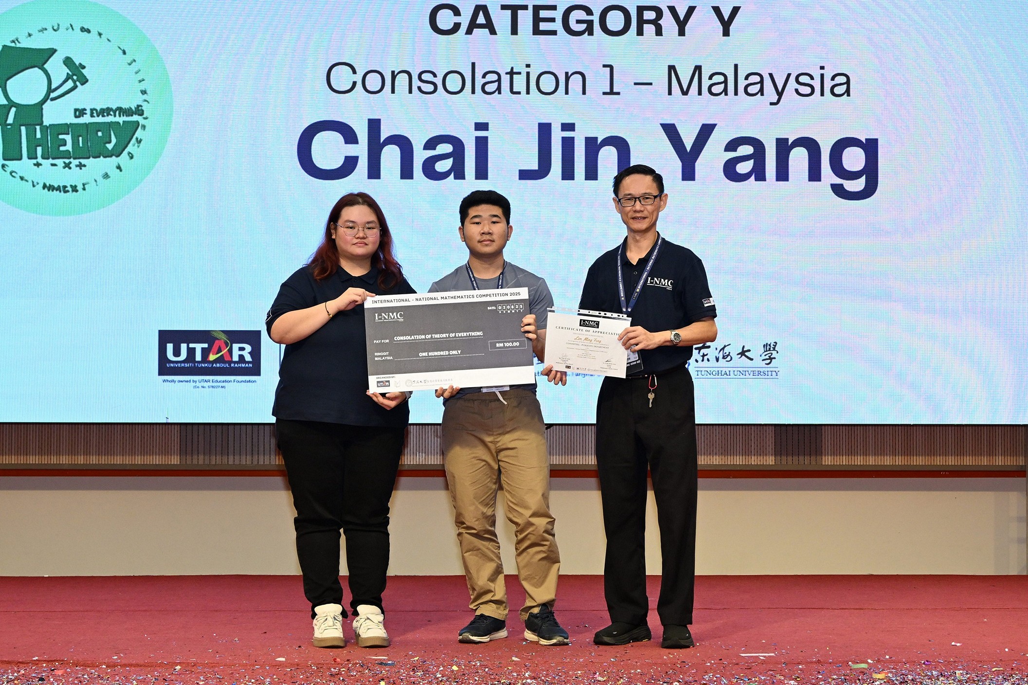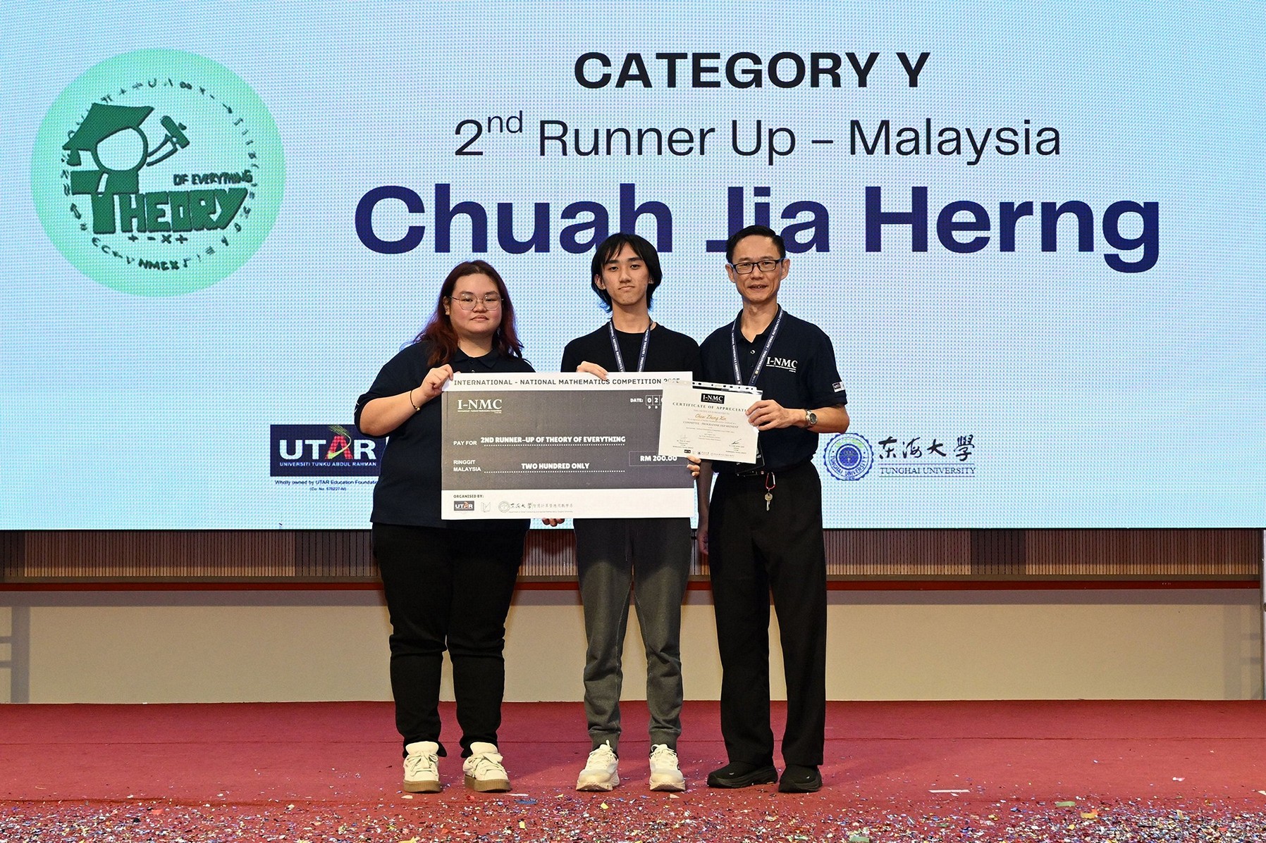 UTTU Award Winner: Chong Yong Zhi UTTU Award, a new recognition born from the collaboration between UTAR and Tunghai University, was presented to the top scorer of the Iron Math Trophy across both campuses. |