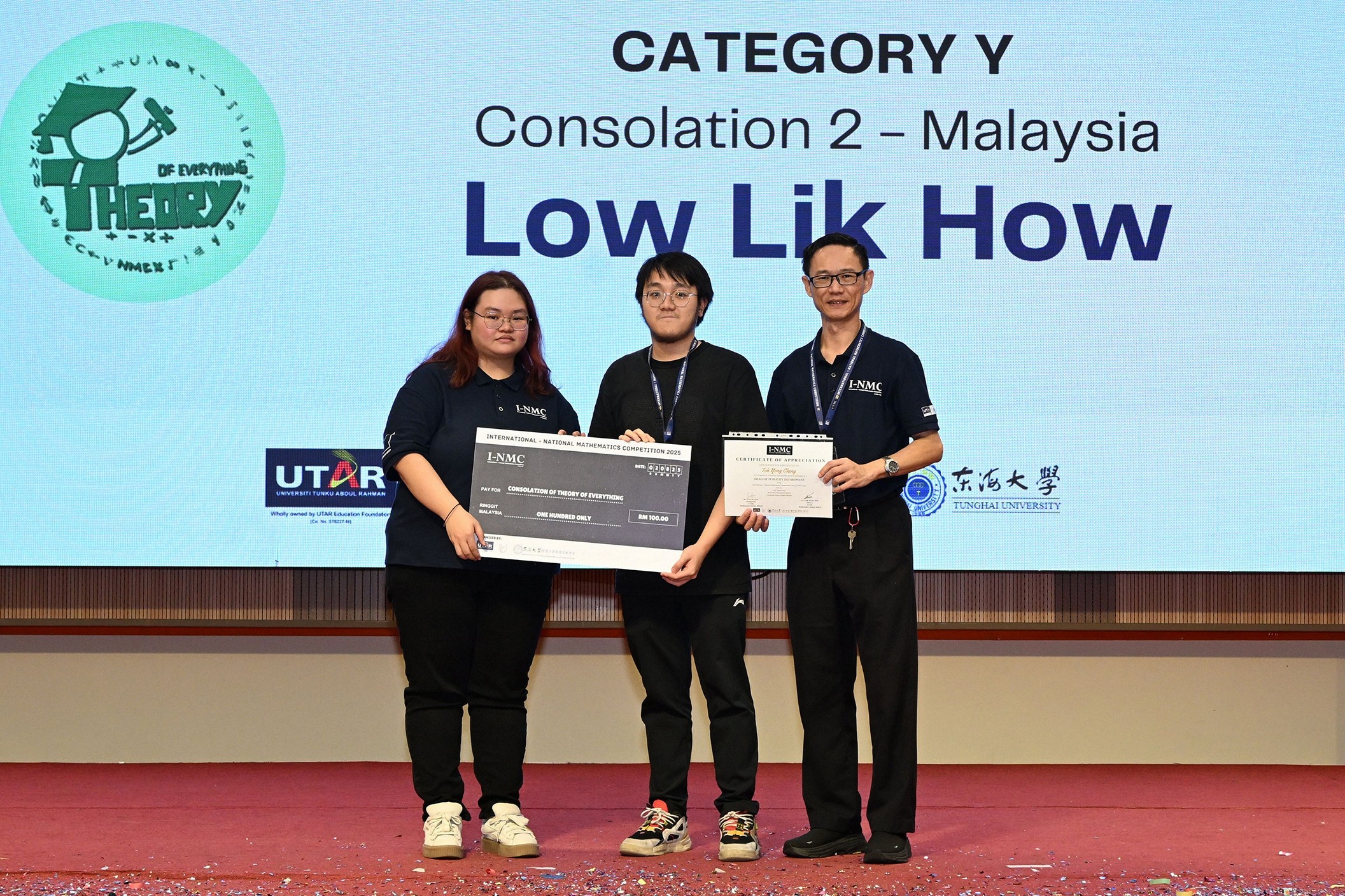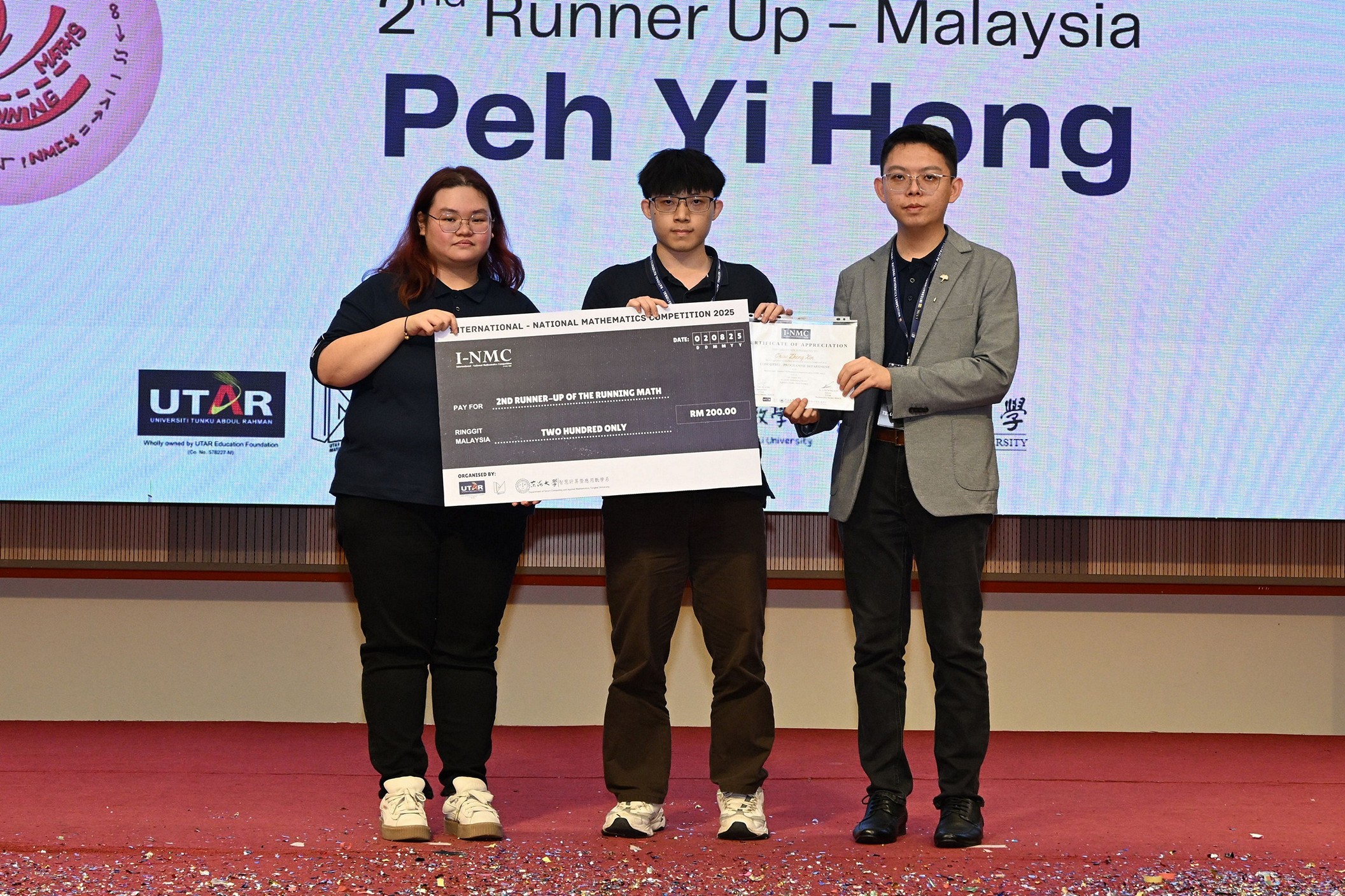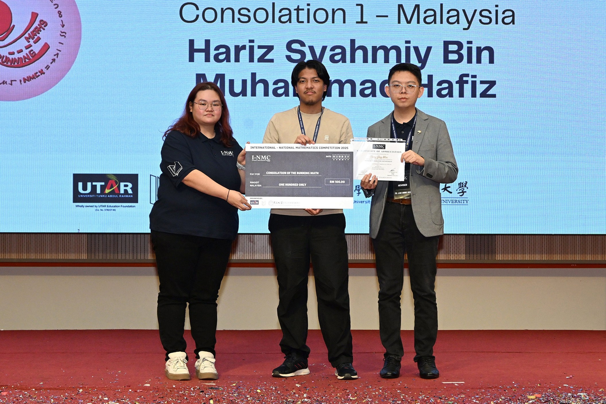 This year also marked a historic milestone as the competition was rebranded as the International-National Mathematics Competition (I-NMC) 2025, through a first-ever collaboration with Tunghai University. For the first time, the competition was held simultaneously at UTAR Sungai Long Campus and Tunghai University, expanding the platform from a national-level challenge into an international exchange of mathematical knowledge and collaboration.