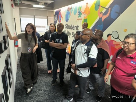 The final stop was SMU, with the tour hosted by Prof Dr Tan Wee Liang from the Lee Kong Chian School of Business, who guided the group through key university facilities, including the Student Services Hub and the university library. They learnt how SMU supports students through a student-centric environment and strong academic mentorship. A dedicated discussion was also held, which centred on building a strong research profile, offering practical insights into publishing, academic growth, and becoming confident researchers. As it highlighted personal discipline, strategic planning and continuous skills development, the interaction provided a valuable perspective for postgraduate students, primarily in relation to steering academic expectations and enhancing research productivity.