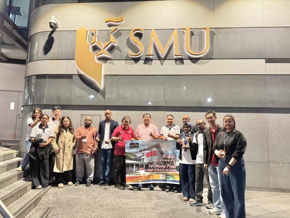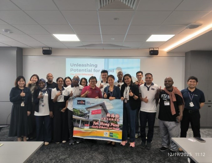 The Teh Hong Piow Faculty of Business and Finance (THP FBF) recently extended its postgraduate learning overseas to the heart of Singapore’s world-renowned universities, from 18 to 20 December 2025. The postgraduate students, accompanied by THP FBF Dean Assoc Prof Dr Au Yong Hui Nee and Department of Marketing Head Dr Choy Johnn Yee, embarked on the Business, Research and Innovation Study Tour: Short-term Mobility Study Programme, visiting three leading institutions, namely the Singapore University of Social Sciences (SUSS), the National University of Singapore (NUS), and the Singapore Management University (SMU).