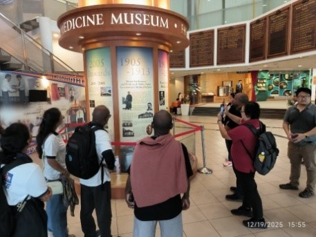 The tour continued to NUS, where the scale and diversity of the campus left a strong impression on the UTAR delegates. They were accompanied by an NUS academic from the Departments of Ophthalmology, Anatomy and Biomedical Engineering, who is also a proud first-batch graduate of UTAR’s Bachelor of Science (Hons) Biomedical Science, Dr Daniel Teh Boon Loong. He provided an engaging overview of NUS’s history, mission, and vision, before leading the delegates through several key academic and research facilities. Highlights included the Lee Kong Chian Natural History Museum; the Yong Siew Toh (YST) Conservatory of Music; the Yong Loo Lin School of Medicine, a member of the National University Health System (NUHS); and the Alice Lee Centre for Nursing Studies. Through the tour, the delegates experienced first-hand how a world-class university integrates interdisciplinary education, cutting-edge research, and professional training.